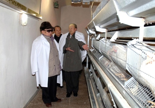 Old Kim never tried to pose in the heroic mode of Putin, but he sure looks at a lot of interesting stuff. He comes across as the more honest of the two. I suspect Putin doesn’t actually spend all his time wrestling with tigers. But I can believe that Kim Jong-Il really did spend a lot of time, you know, looking at stuff. Stuff like soft drinks and chickens. Here he’s totally cracking up the umbrella guy. And here’s a great shot of him in a Supervillain Lairmobile. Next stop, secret volcano laser control room! Or hell, whichever comes first.