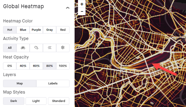 As in the sentence: “Show me the site that will let me make my own Strava-like heatmaps for free.”