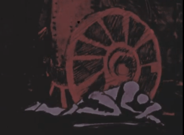 I remember this film, The Legend of John Henry, from when I was in grade school. It made a big impression on me. Do you know the story? John Henry was a mythical 19th century railroad laborer. He was good at what he did: driving steel spikes. One day his gang was given the task of cutting a tunnel through a West Virginia mountain. To make the job go faster, the boss brought in a steam drill. John Henry saw the machine as his rival. He vowed he’d be the first to smash through that mountain. He did not survive the battle.